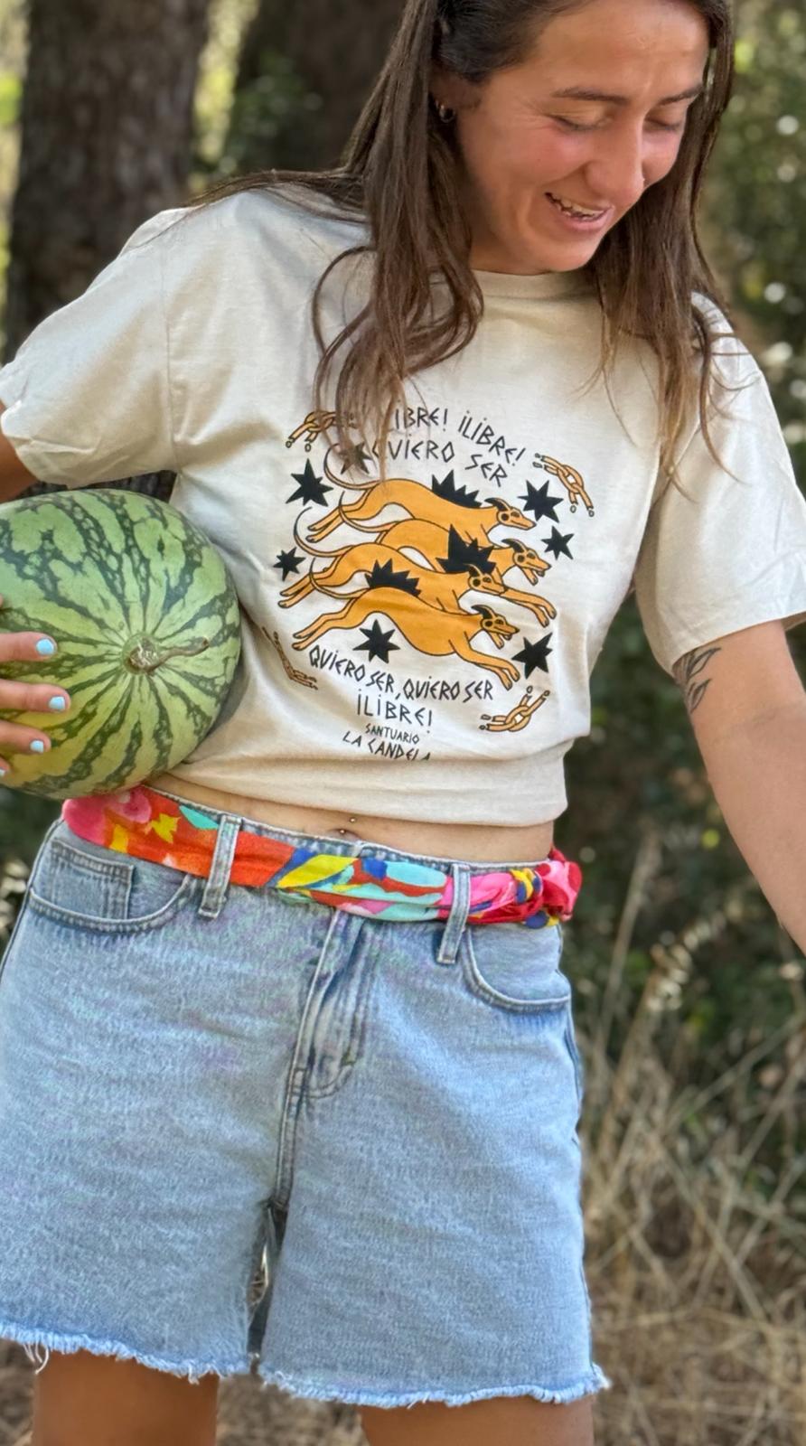 Todo lo recaudado por su venta es cien por cien solidario con los animales del Santuario : te llevas camisetón y ayudas a cientos de vidas! Doble placer !