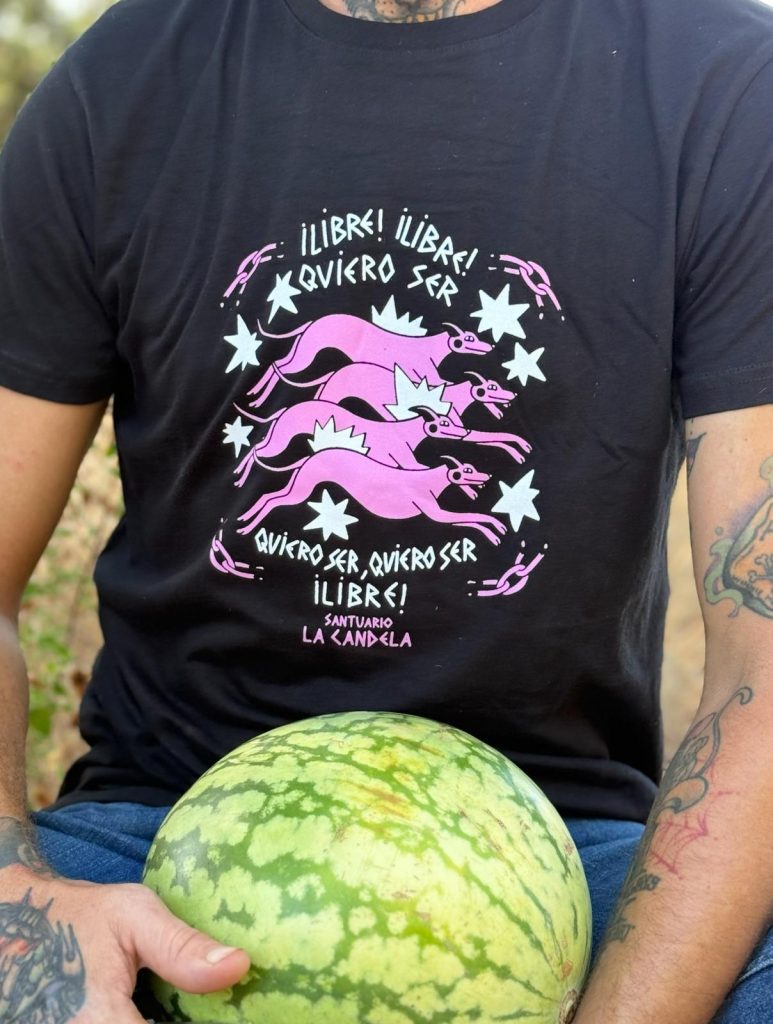 Todo lo recaudado por su venta es cien por cien solidario con los animales del Santuario : te llevas camisetón y ayudas a cientos de vidas! Doble placer !